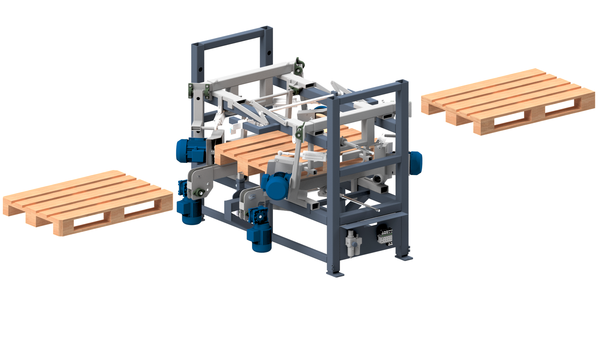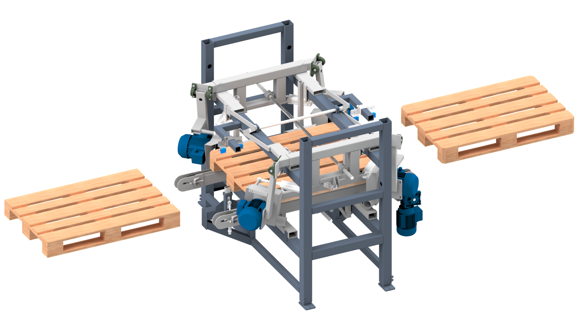 Obrzynarka jest maszyną przeznaczoną do obrzynania naroży palety. Możliwość rozsunięcia prowadnic oraz głowic tnących umozliwia zastosowanie maszyny do palet o szerokości 80-100-120cm, natomiast zastosowanie podwójnych zderzaków zatrzymujących umożliwia zastosowanie maszyny do palet o długości 100-120cm.
