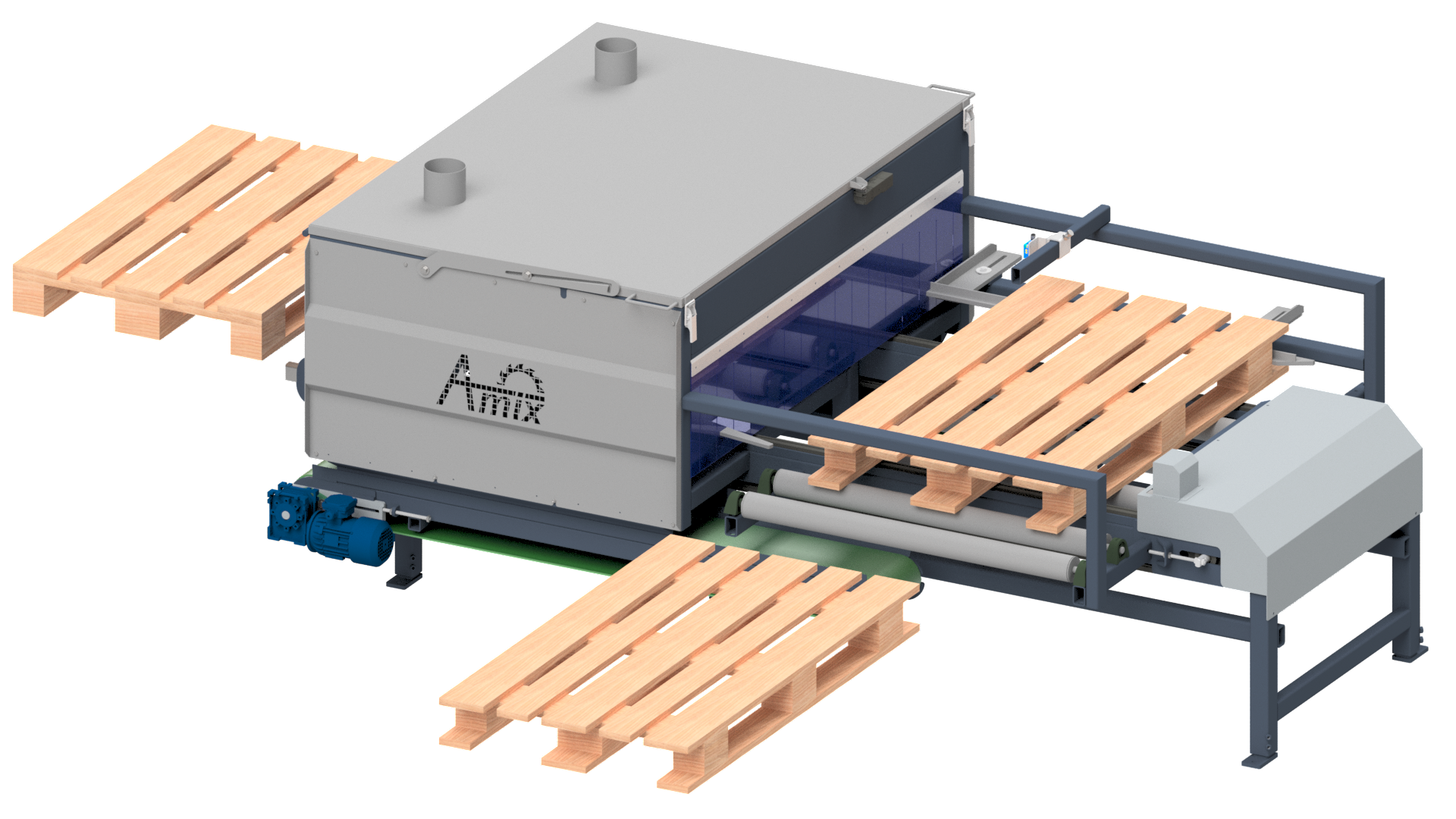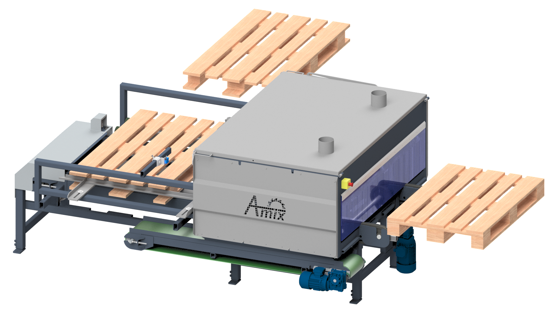 Obrzynarka palet OP-120 służy do obrzynania (formatowania) palet na ustawiony wymiar. Maszyna ta umozliwia obróbkę palet o szerokości 120cm i długości 100-120cm, dzięki czemu znajduje szerokie zastosowanie w wielu zakładach tartacznych w liniach zbijania palet.