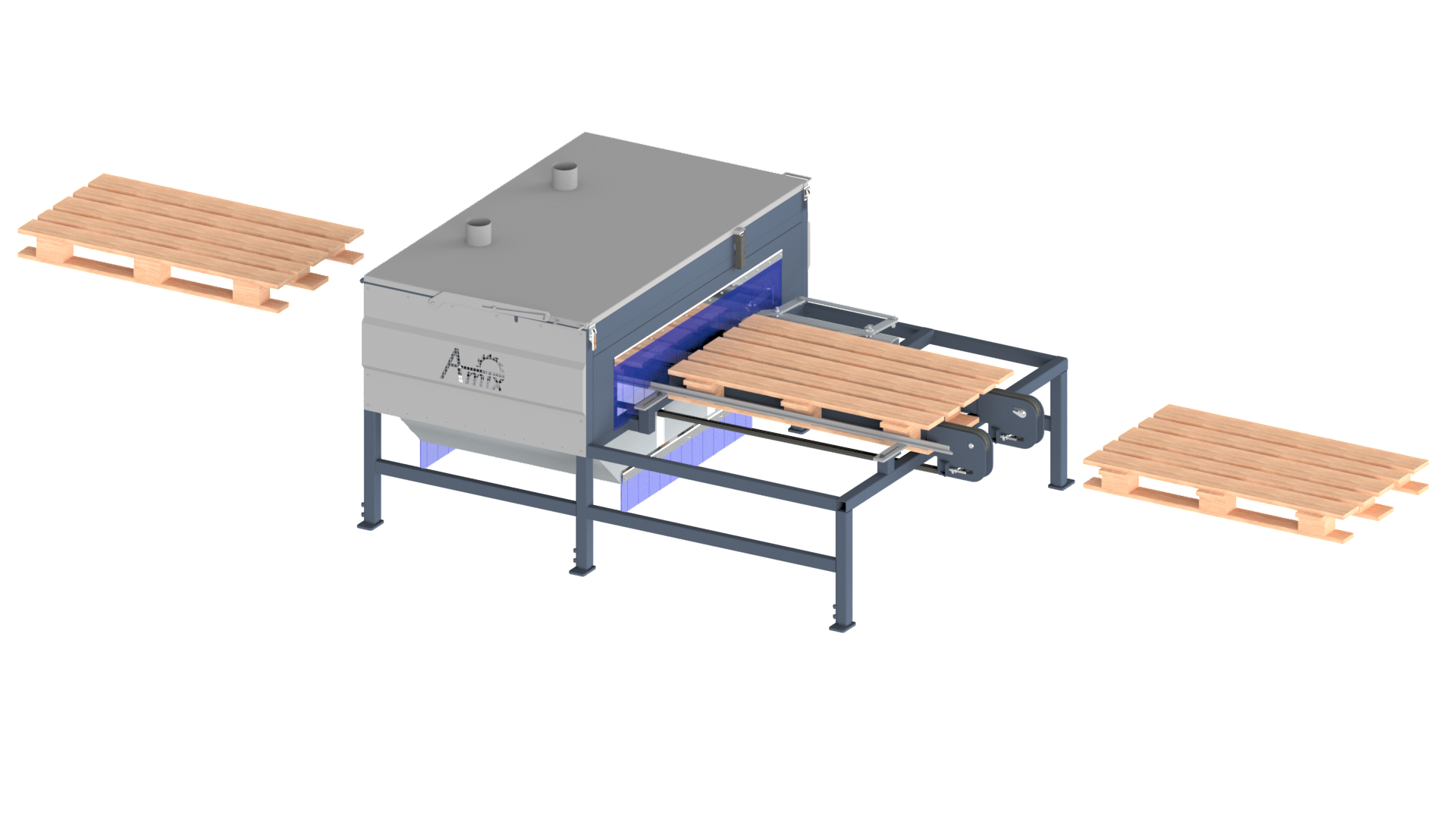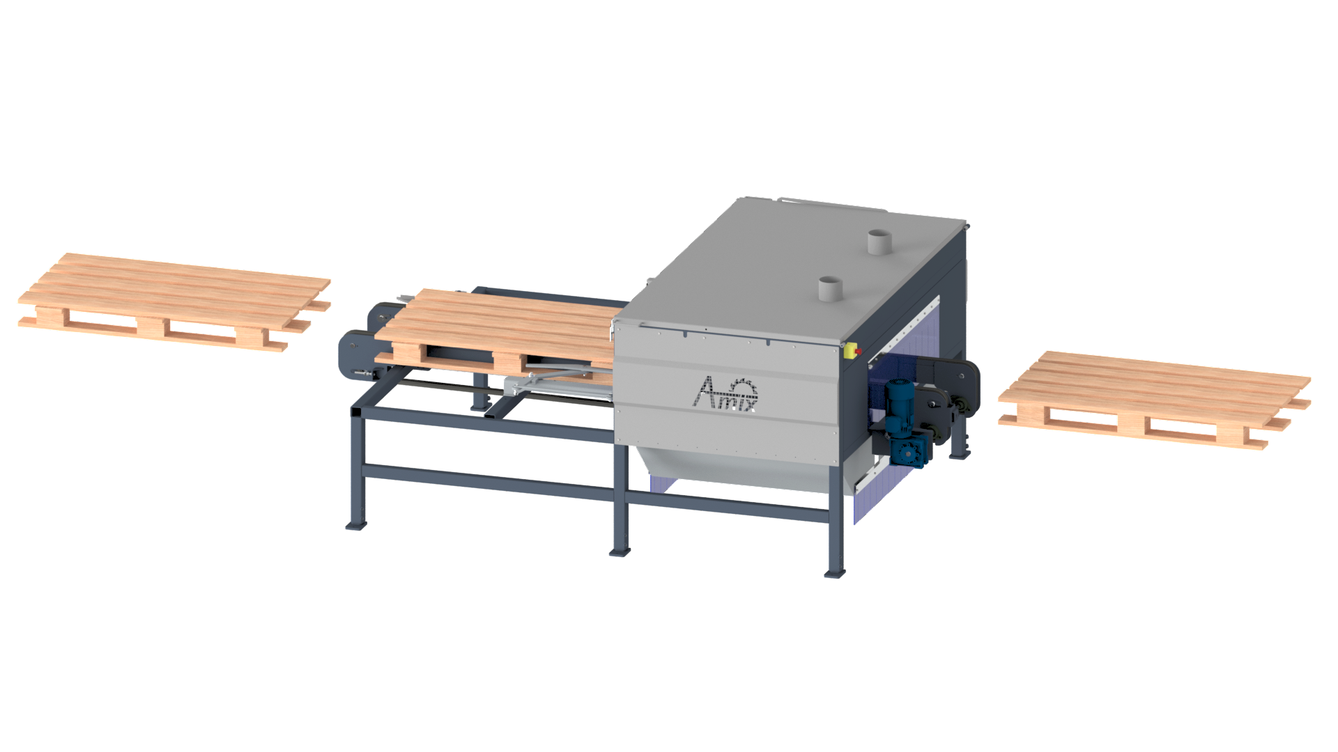 Obrzynarka palet OP-80 służy do obrzynania (formatowania) palet na ustawiony wymiar. Maszyna ta umozliwia obróbkę palet o szerokości 80-100cm i długości 120cm, dzięki czemu znajduje szerokie zastosowanie w zakładach tartacznych i liniach do zbijania palet.