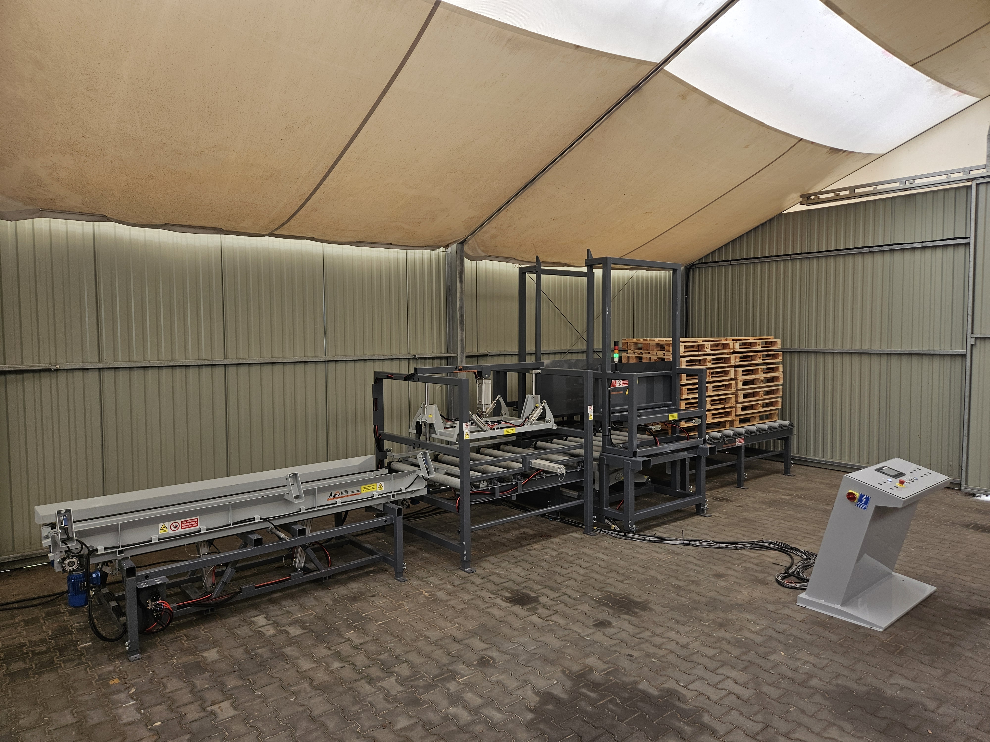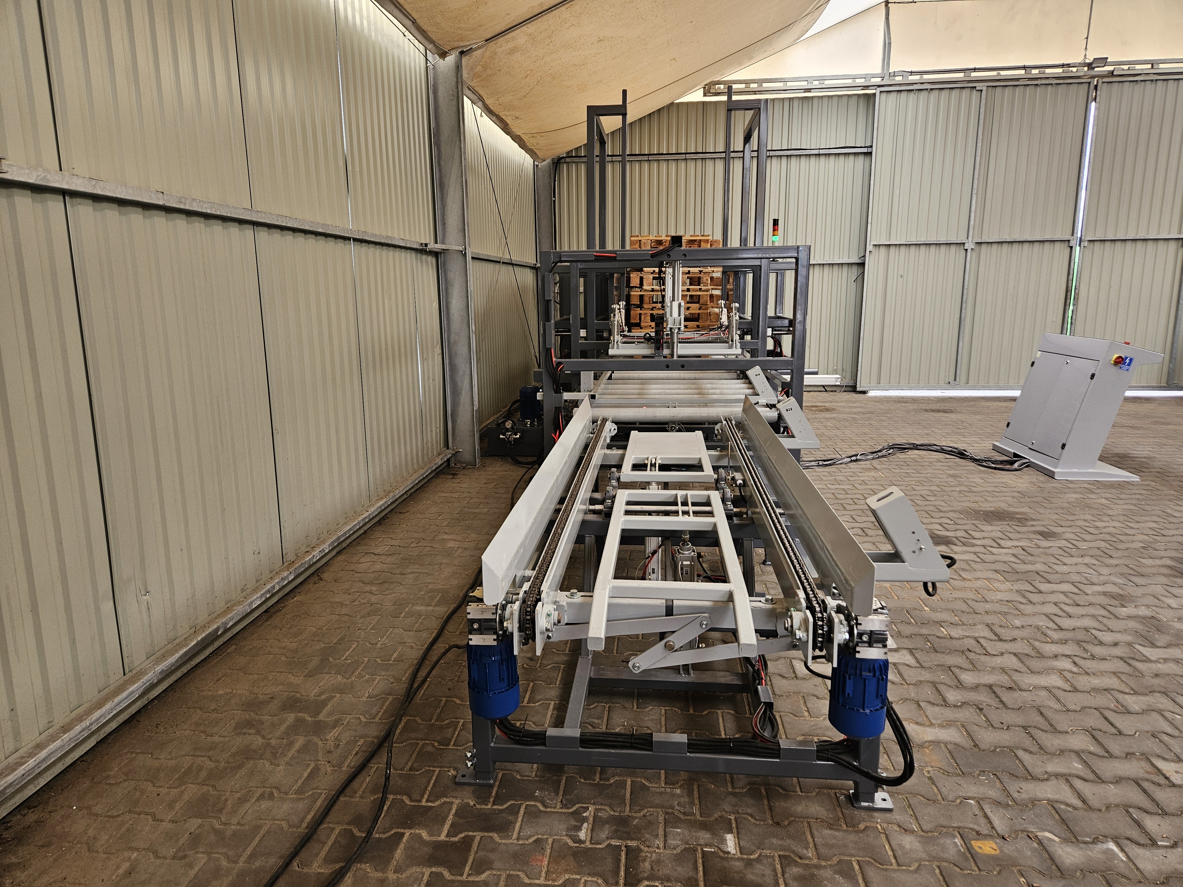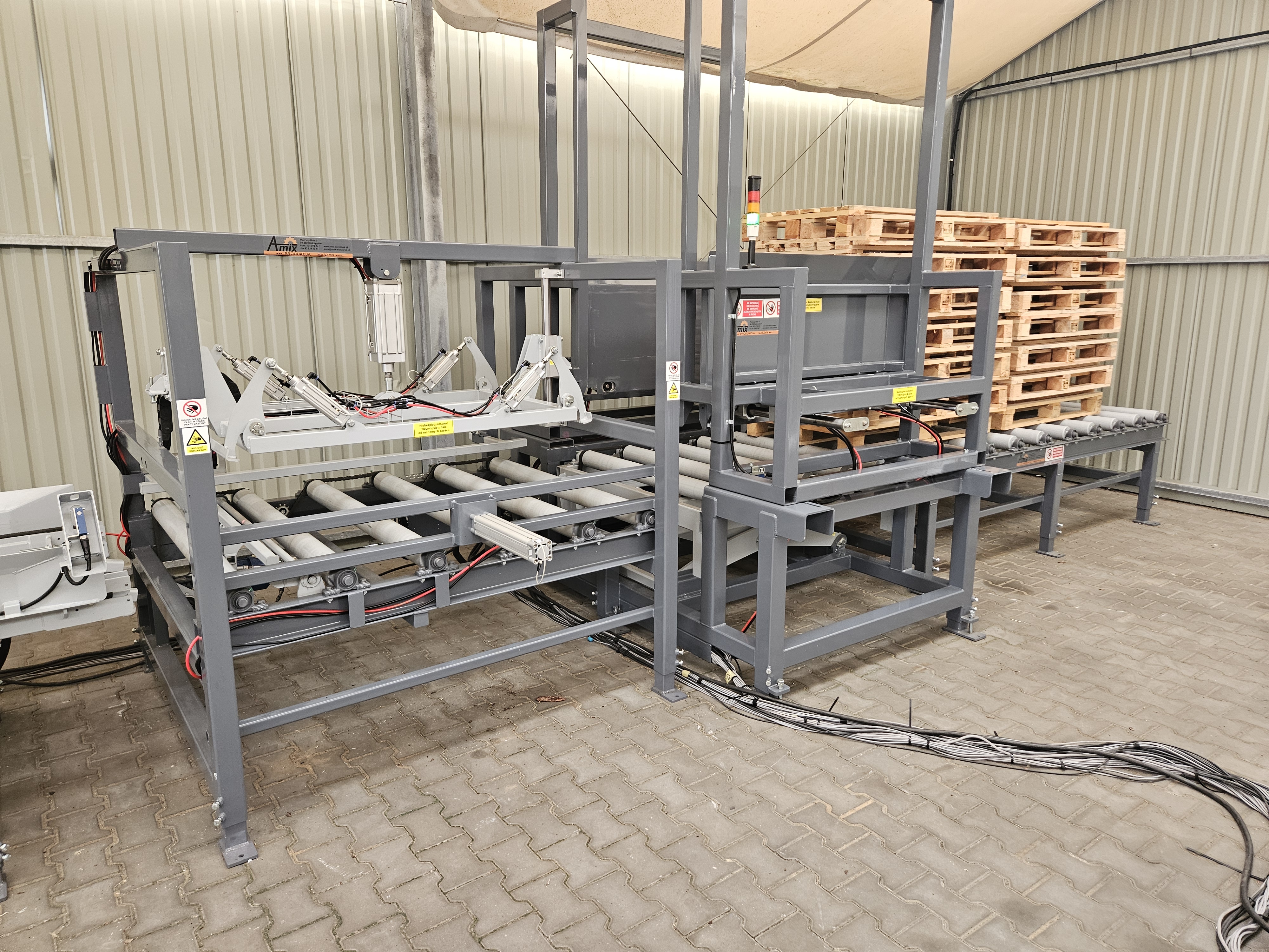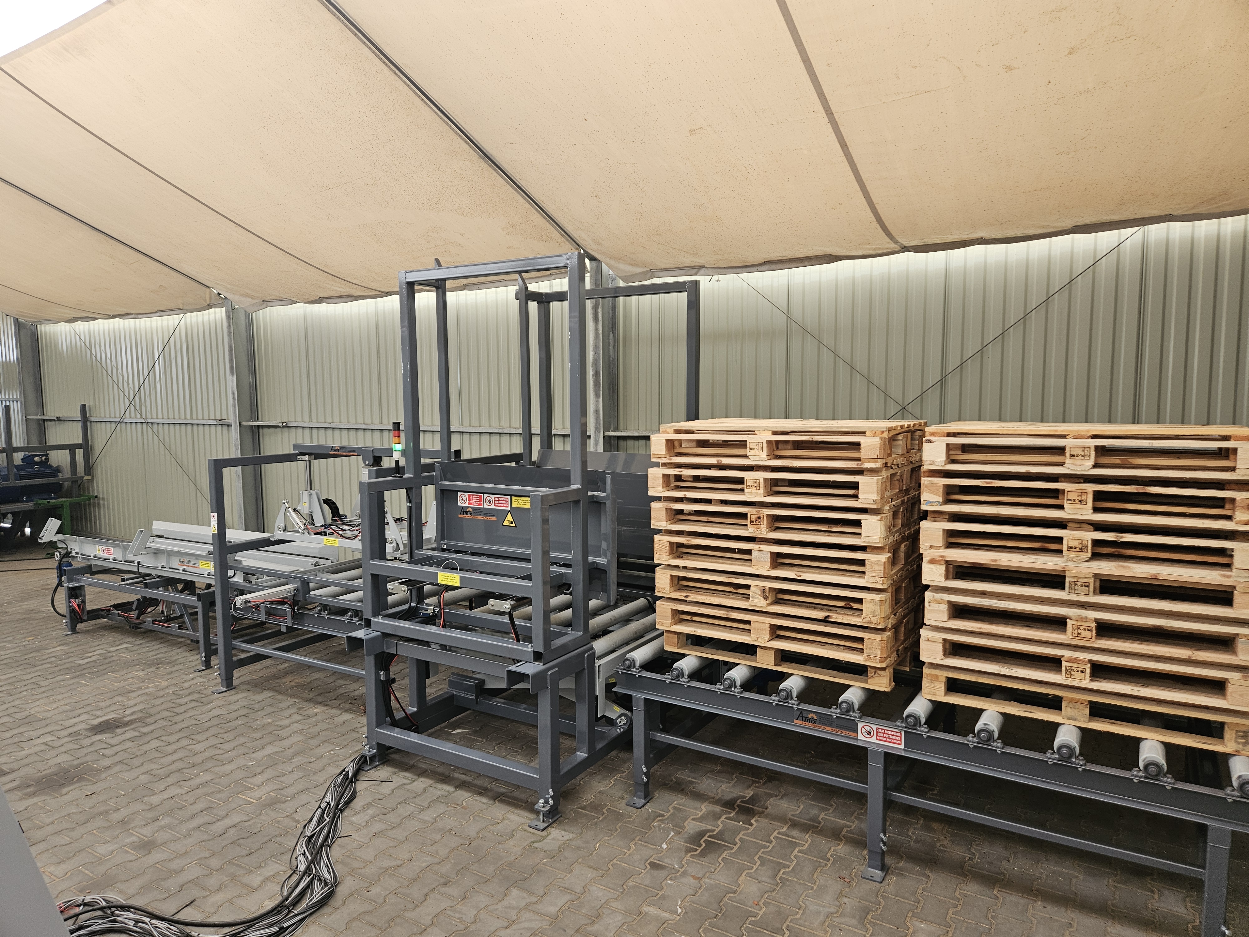 Rozkładarka RPX-120 służy do rozkładania słupków palet złożonych w kanapkę. Maszyna rozkłada palety z predkością 4 na minute.